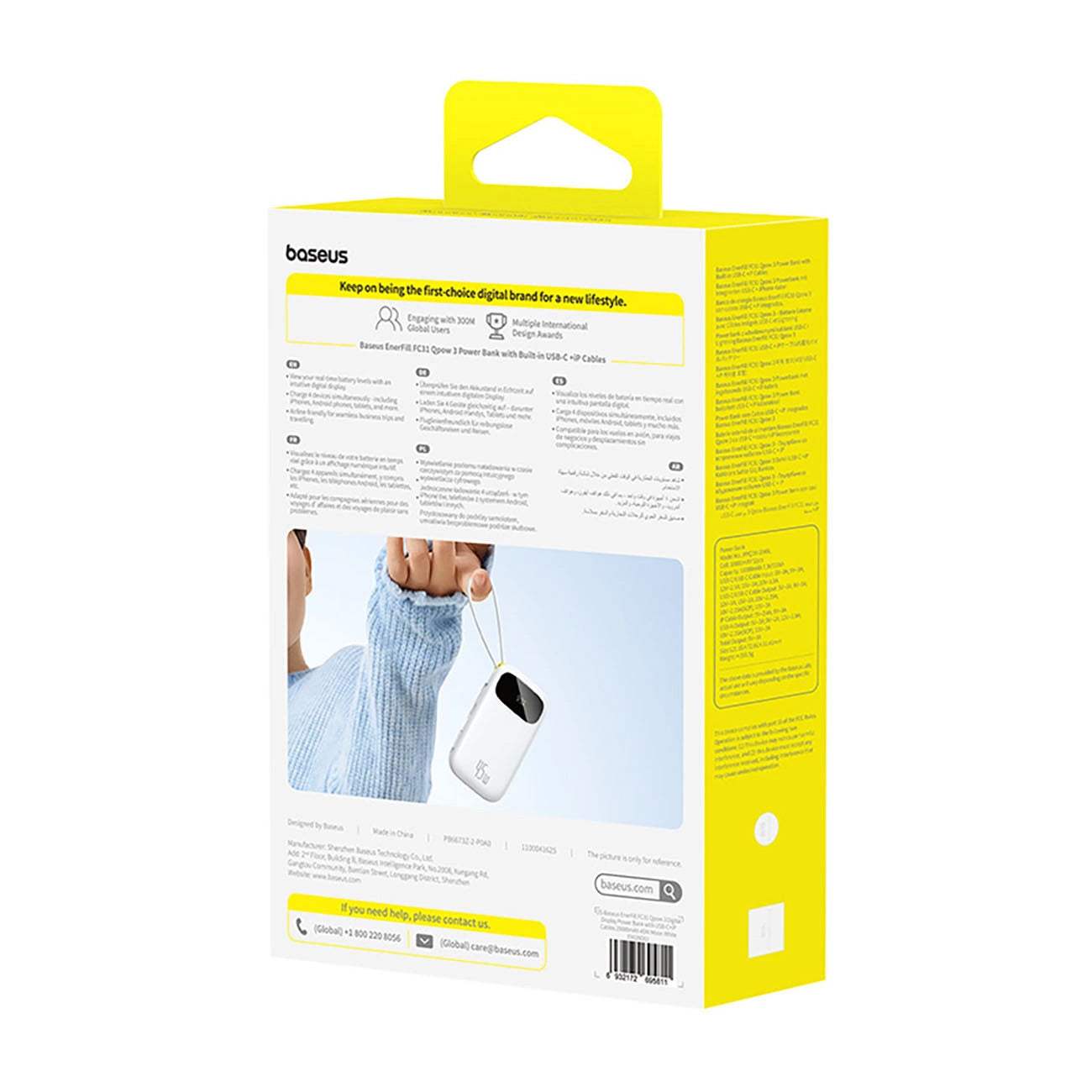 USB-C and Lightning, can also be used as a handle for transport, and the digital LED screen shows the battery level in real time.