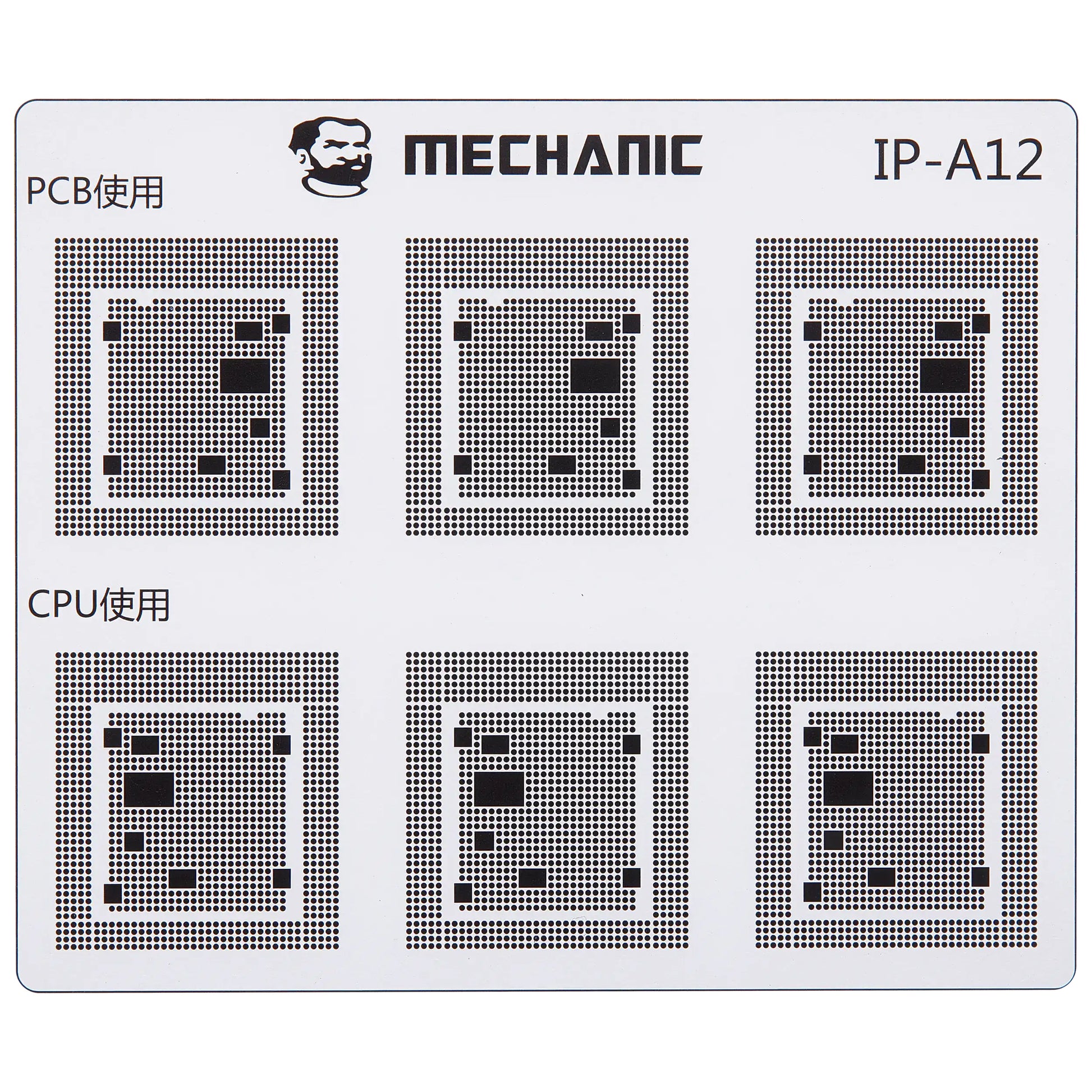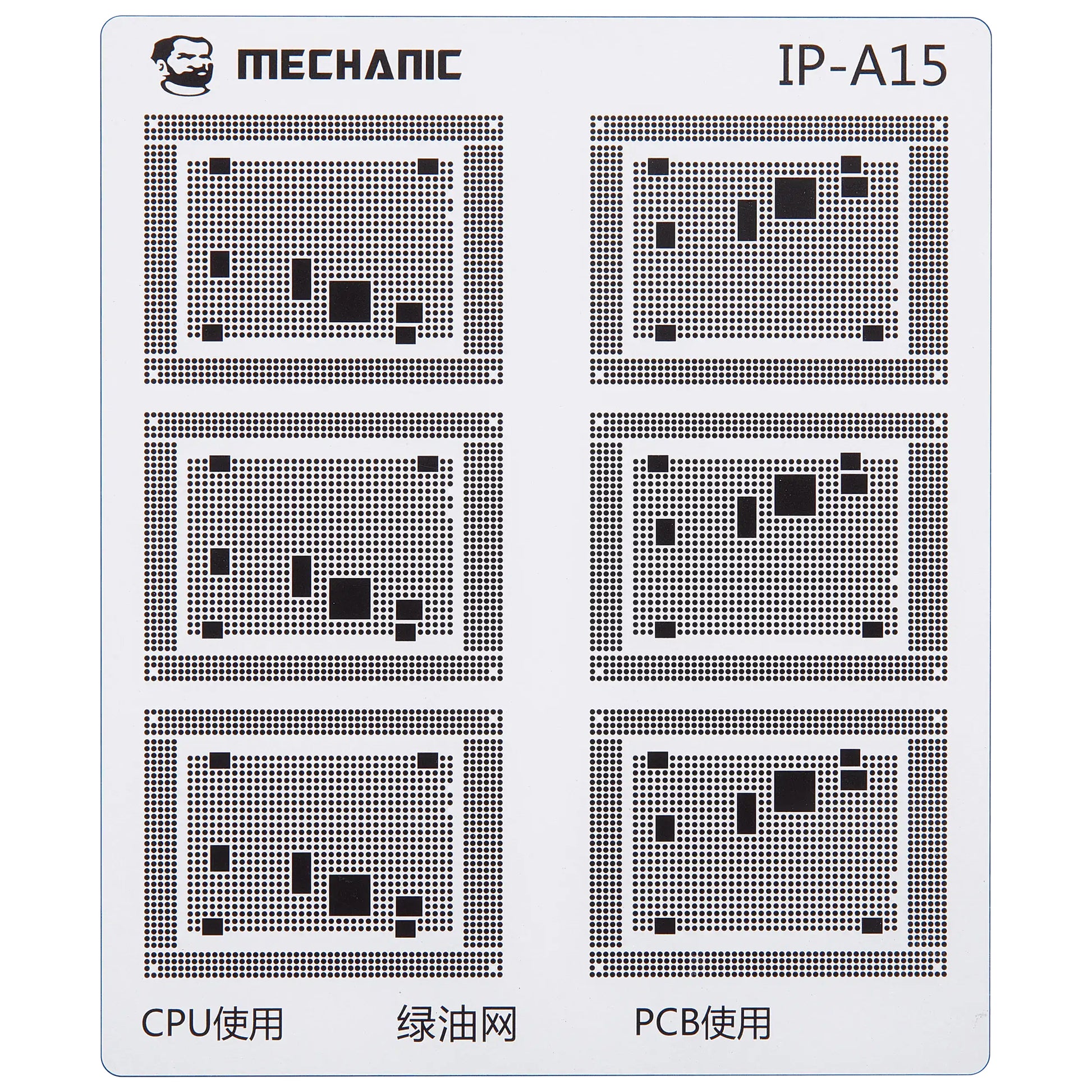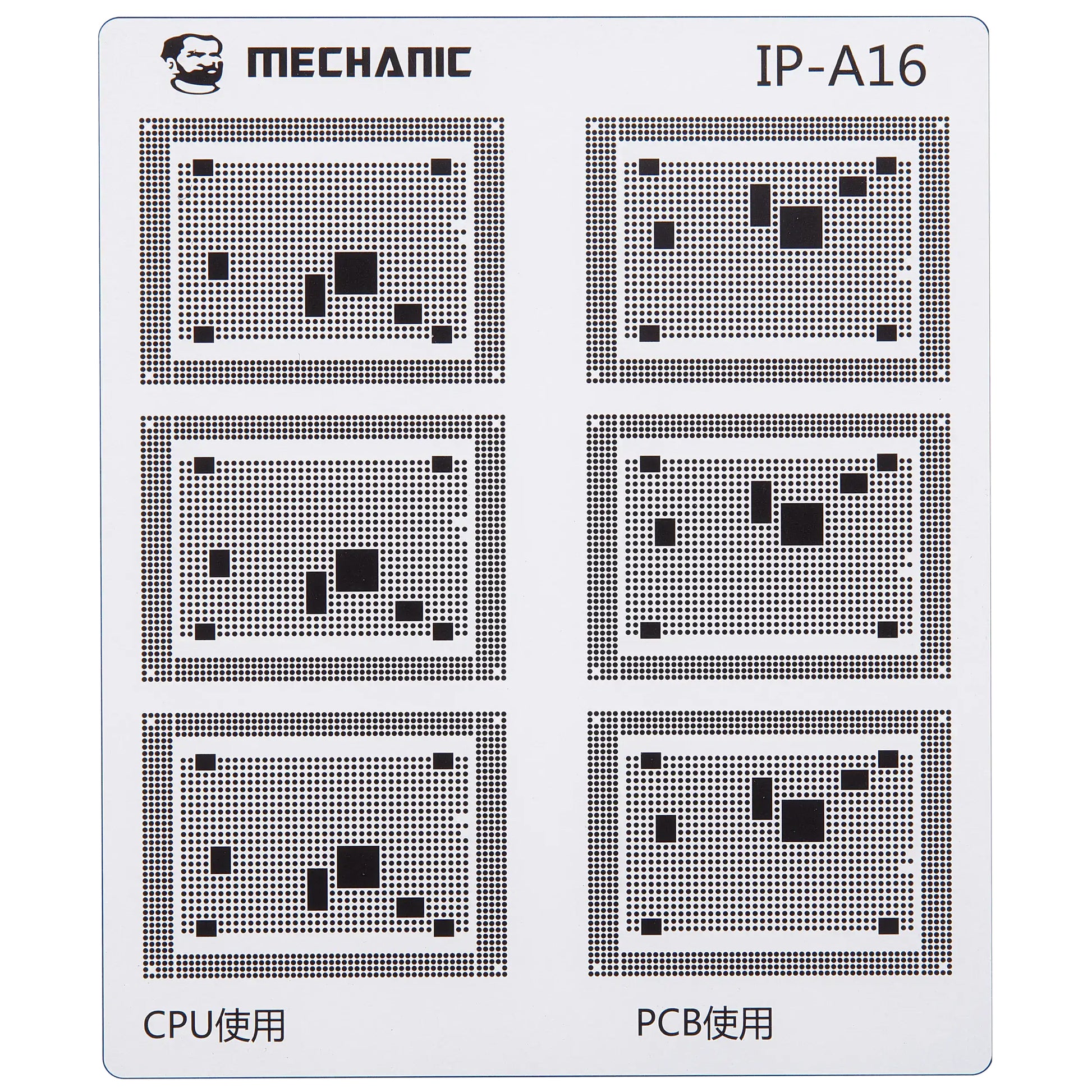Isolate the traces on the motherboard with maximum precision using the professional Mechanic COM80 template, dedicated to CPU repairs on the Apple iPhone 6 - 16 series.