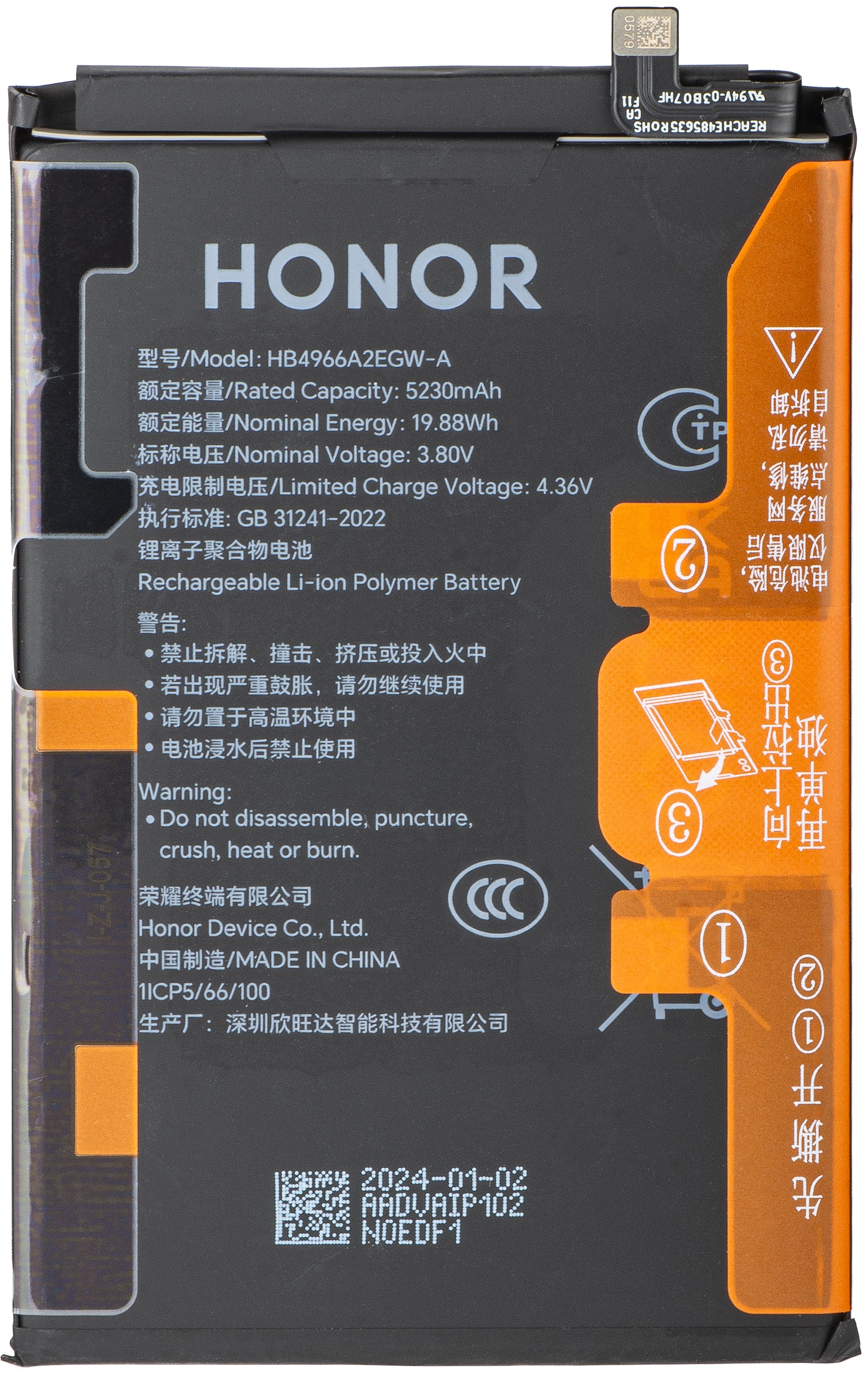 Honor X7b 4G Battery, HB4966A2EGW, Swap