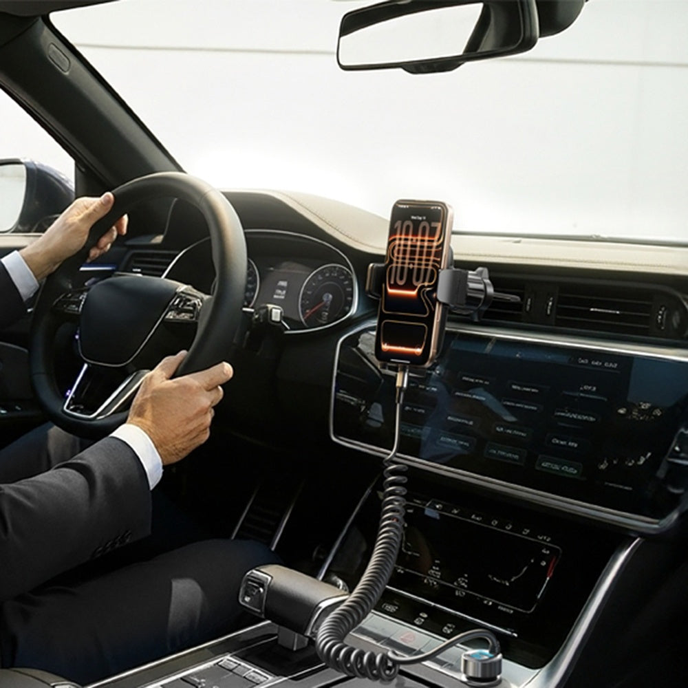 • The spiral USB-C cable is integrated into the car charger and allows flexible use as needed. After use, it easily returns to its original shape.