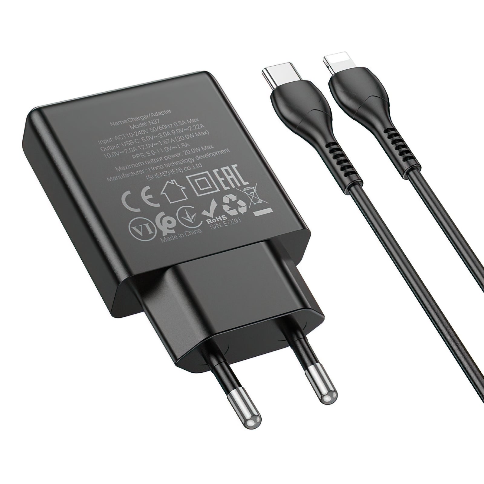 The HOCO N37 charger is designed for fast and safe charging, being perfect for Apple devices. With a power of 30W and