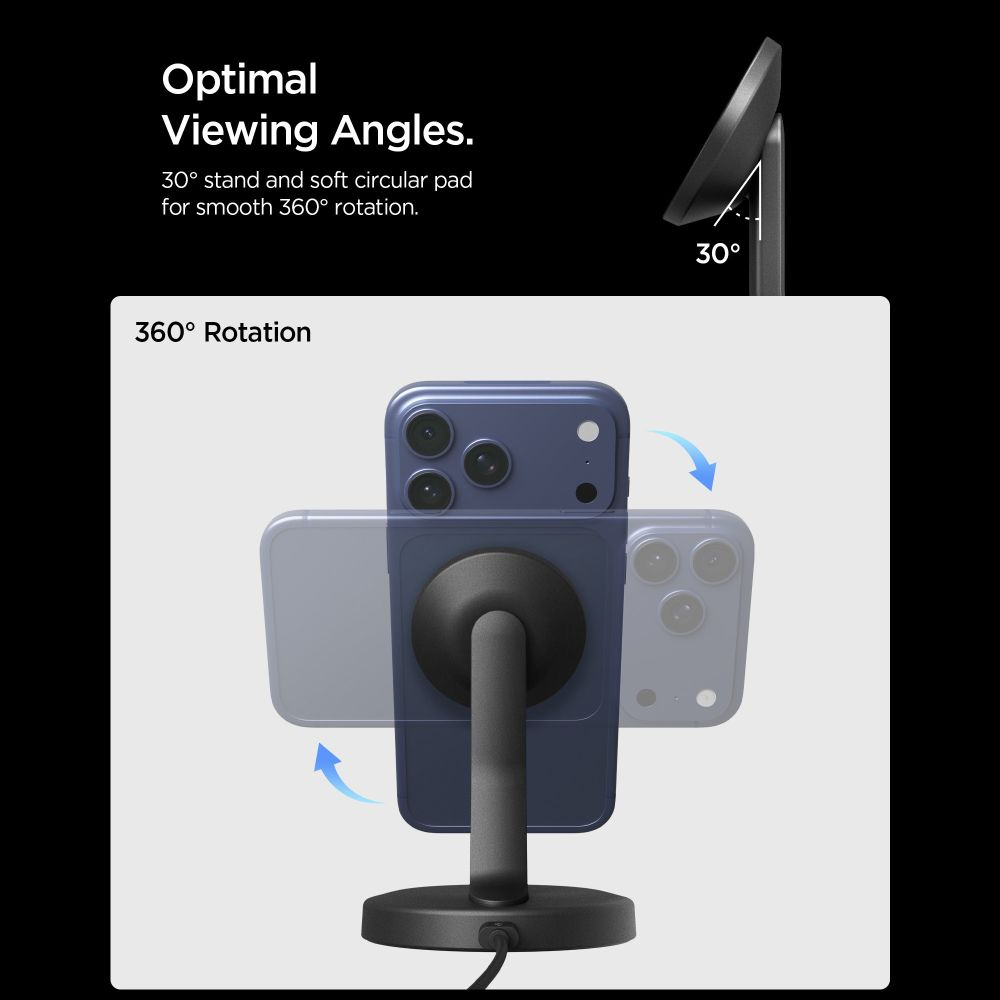 The Spigen EF151MS Essential wireless charger is the ideal solution for fast, safe, and comfortable charging, combining MagSafe technology with